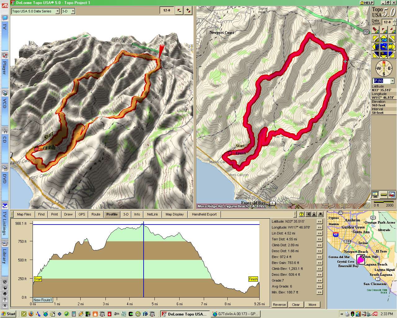 DeLORME Topo USA Version 5, A run in El Moro State Park in California